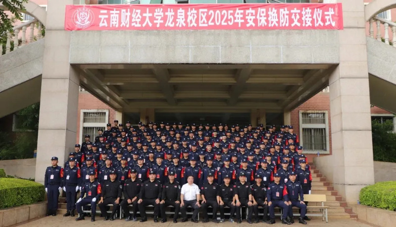 2025年7月22日,云南财经大学举行校园安保交接仪式,云南众安保安服务有限公司再次进驻云南财经大学龙泉校区,众安保安近200名训练有素、精神饱满、英姿飒爽的保安队伍正式为云南财经大学保驾护航。