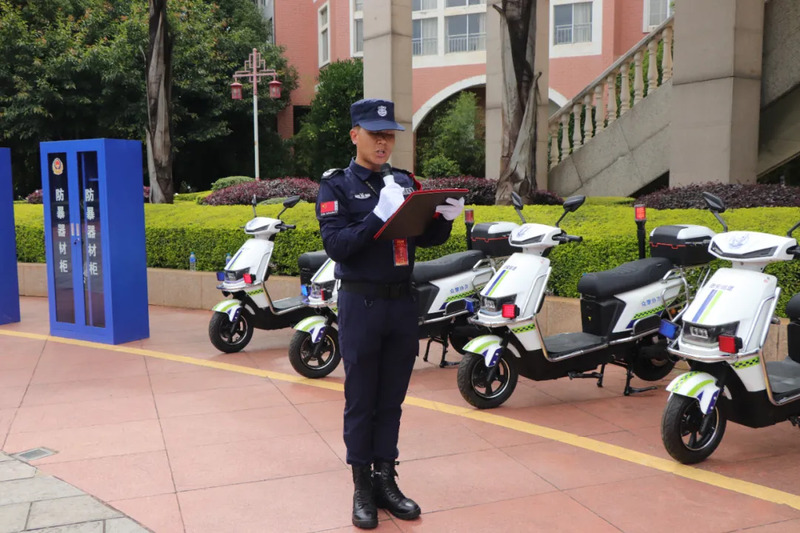 7月22日下午15:30,公司派驻人员准时抵达云南财经大学整队集合,公司副总王俊久向云南财经大学保卫处作了接点报告,保卫处依照进驻要求,对人数、装备以及巡逻车辆进行清点。