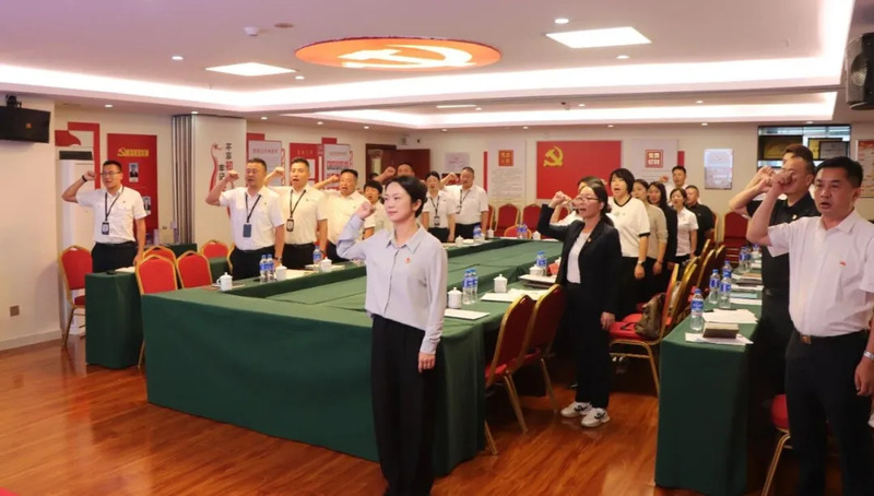 在丁小芮书记的领誓下,全体党员重温入党誓词。誓言铿锵有力,激励大家不忘初心、牢记使命,坚定信仰、与时俱进、砥砺前行。