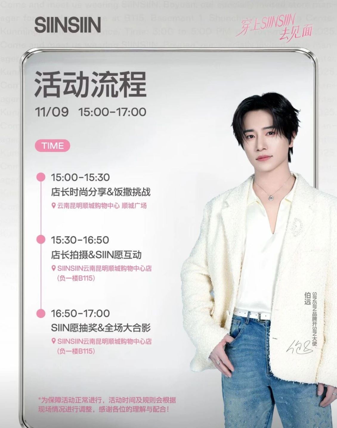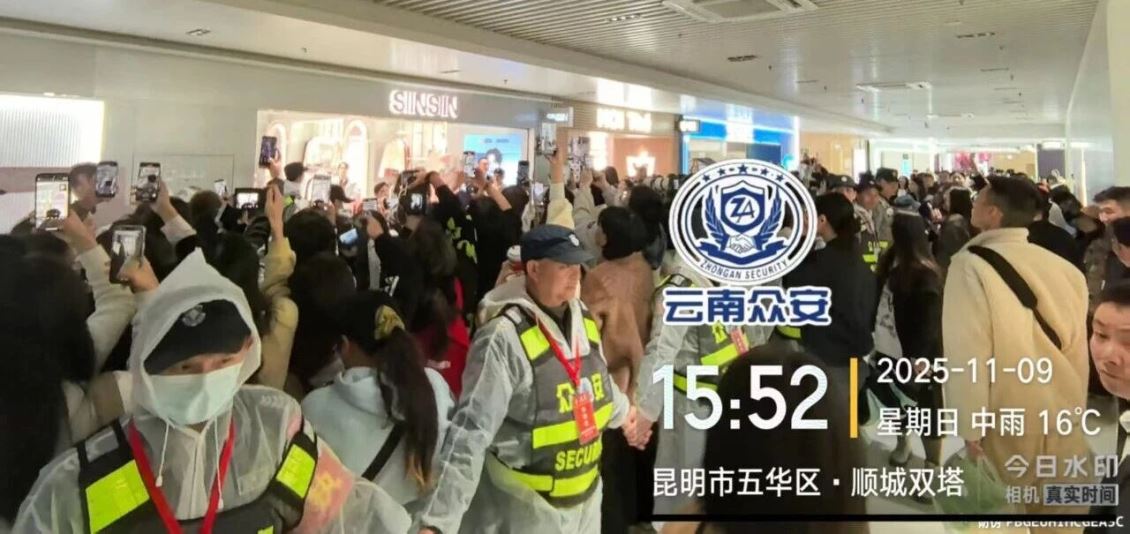 2025年11月9日,国内时尚服装品牌SIINSIIN在昆明顺城购物中心举办明星店长活动,流行音乐男歌手伯远作为特邀店长与主办方、粉丝进行交流互动。受主办方委托,云南众安保安服务有限公司挑选近百名精锐保安员完成了活动安保任务。