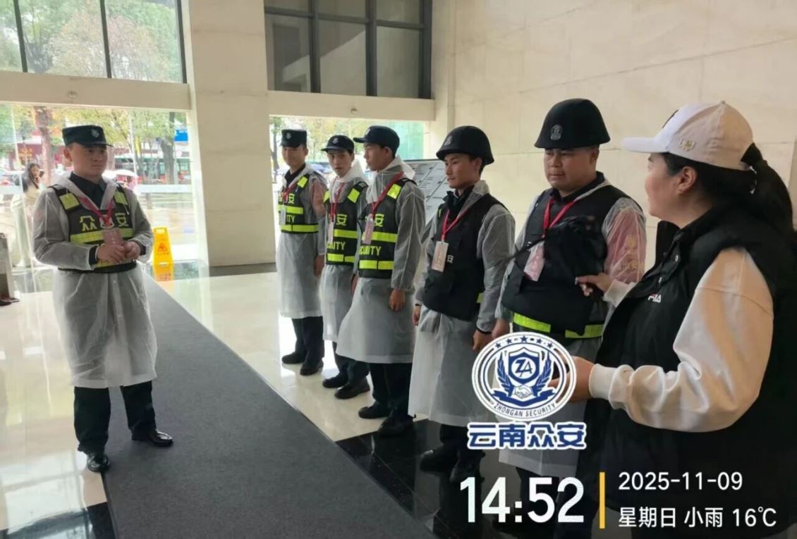活动当天,受降雨影响,执勤任务难度倍增,分管领导进行了充分动员,要求全体执勤人员要发扬“吃苦耐劳、敬业奉献,担当作为”的众安精神,克服恶劣天气、复杂环境带来的困难,确保高标准完成安保任务,切实树立云南众安保安在人民群众中专业化、标准化的企业形象。