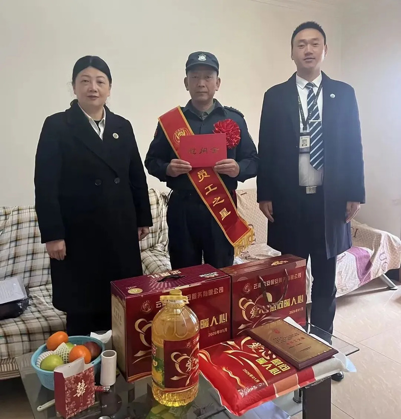 为深入践行公司“以人为本”发展理念,切实关心一线员工工作生活状况,解决员工“急难愁盼”问题,进一步增强团队凝聚力与员工归属感,2025年12月至2026年1月期间,云南众安保安服务有限公司开展了2025年度优秀、困难员工家访慰问活动。公司领导班子牵头组建慰问小组,深入全省各片区一线员工家中,用脚步丈量责任,用真心传递温暖,让每一位坚守岗位的众安人及其家属在凛冽寒冬中感受到“企业大家庭”的浓浓暖意。