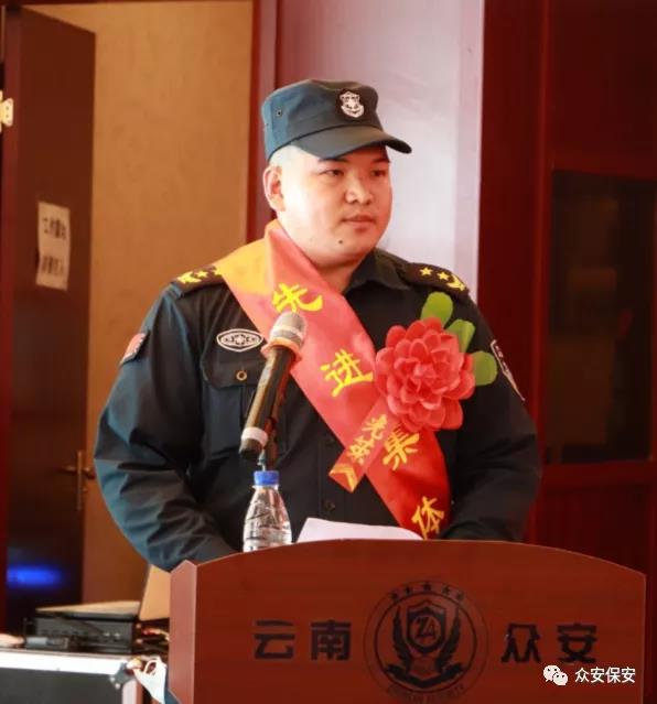 罗艳虹表示能够作为“先进个人”代表上台发言倍感荣幸与自豪,公司赋予他们“先进个人”的荣誉,是对每们的工作极大的肯定与鼓励。在此,感谢公司的培养,感谢每一位同事的辛勤付出,感谢一如既往支持云南众安工作的客户单位。这份沉甸甸的荣誉是每一个人的,没有同事间的团结合作、没有每一个众安人的精心耕耘就没有这份殊荣,2020年是公司标准化实施年,面临的任务将更加艰巨,我们将把过去的成绩,作为工作新起点,发扬吃苦耐劳、不屈不挠的战斗作风,以更高的标准严格要求自己,虚心学习他人的长处,刻苦钻研业务知识,不断引进和储备保安人才,使自己的业务